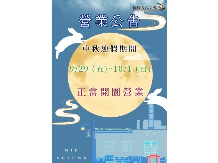 9/29(五) ~10/1(日)中秋連假期間正常營業