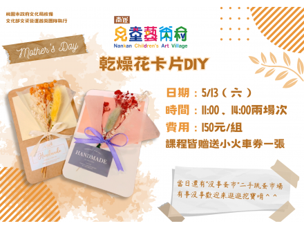 【南崁兒藝村】五月份《沒事蚤市》x母親節乾燥花卡片