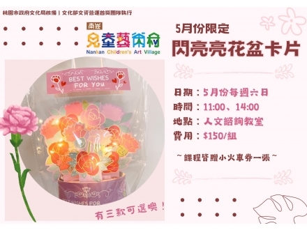 【南崁兒藝村】五月份園區手作課程來啦~「閃亮亮花盆賀卡」