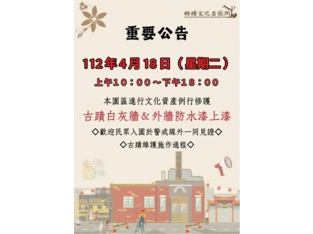 本園區內將進行古蹟日常維護
