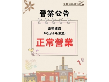 【梧棲文化出張所】清明節、兒童節連假正常營業公告
