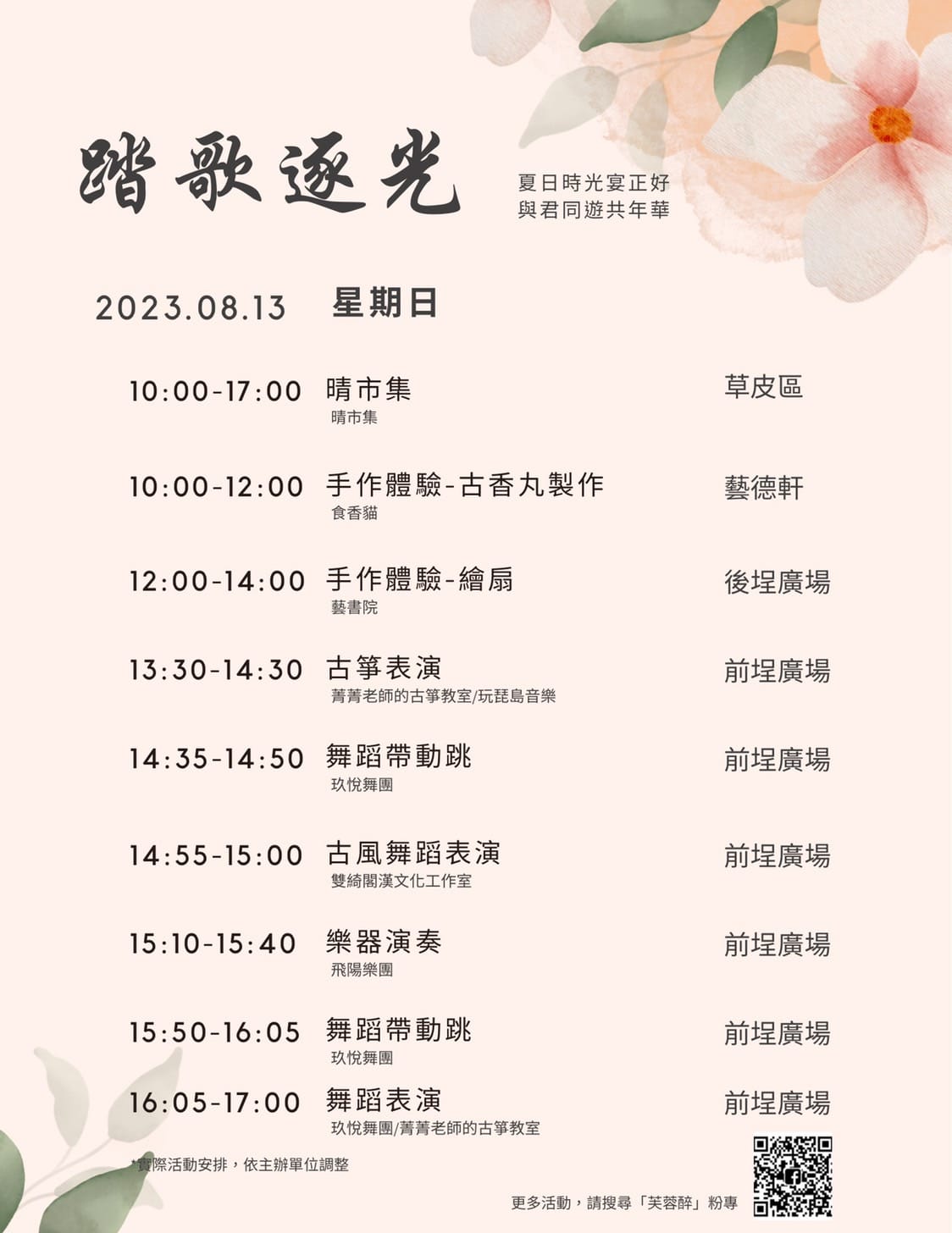 活動內容:(開放式表演)→舞蹈表演、樂器演奏、舞蹈帶動跳(需事先報名)→花神選拔(漢服走秀)、漢服妝造、漢服出租