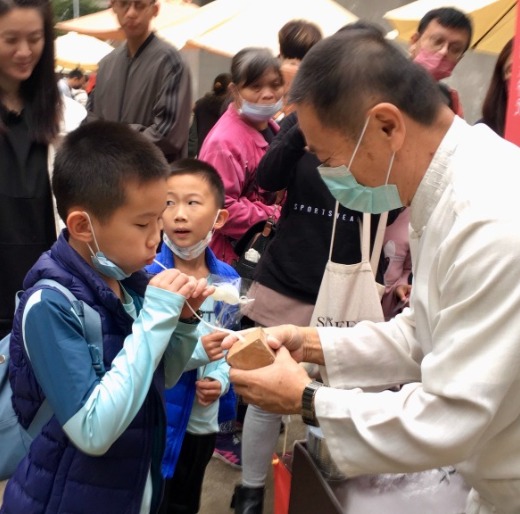 本次市集特別請來了吹糖人,超難得的體驗讓民眾大排長龍,現場也不斷飄出好香甜的味道