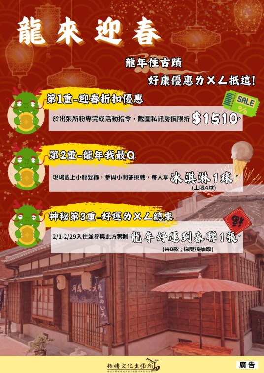 龍年住古蹟,好康優惠ㄌㄨㄥ抵這啦!