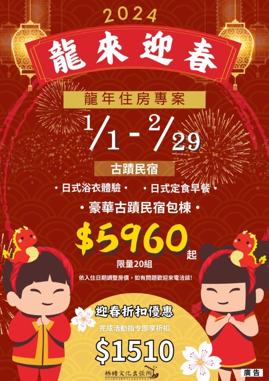 2024古蹟民宿春節優惠專案,重磅出擊!!!
