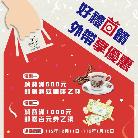 為了感謝您們一直以來的支持!特別推出了精彩的外帶消費優惠活動,讓美味隨時隨地伴您左右!
