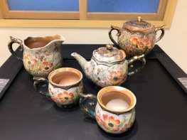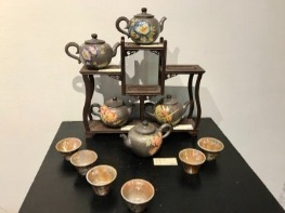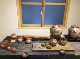 可以想見,原本古樸的柴燒陶具,加上老師釉下彩顏色的巧妙雕琢,一定更添創新與韻味。