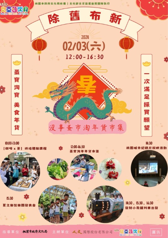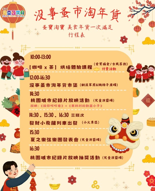 兒藝村今年的市集有豐富的親子二手攤商、特色美食年貨饗宴、文創小物,歡迎大家一起來熱鬧挖寶,吃飽飽玩樂樂!!!