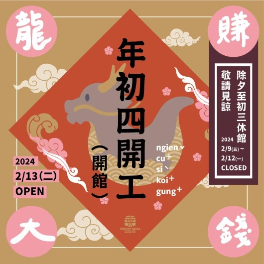 東勢客家文化園區春節連假休館公告 除夕2/9(五) 至 初三2/12(一) 我們休館歐! 但大家別擔心 我們到時候每一天都會發文 在線上與大家一同歡慶春節假期 另外 東好假日市集初四2/13(二)、初五2/14(三) 會在園區陪伴大家一起度過美好春節 歡迎初四開館後 大家一起到東勢客家文化園區踏踏春 #東勢客家文化園區 #臺中客家故事館 #休館公告 #春節休開館通知