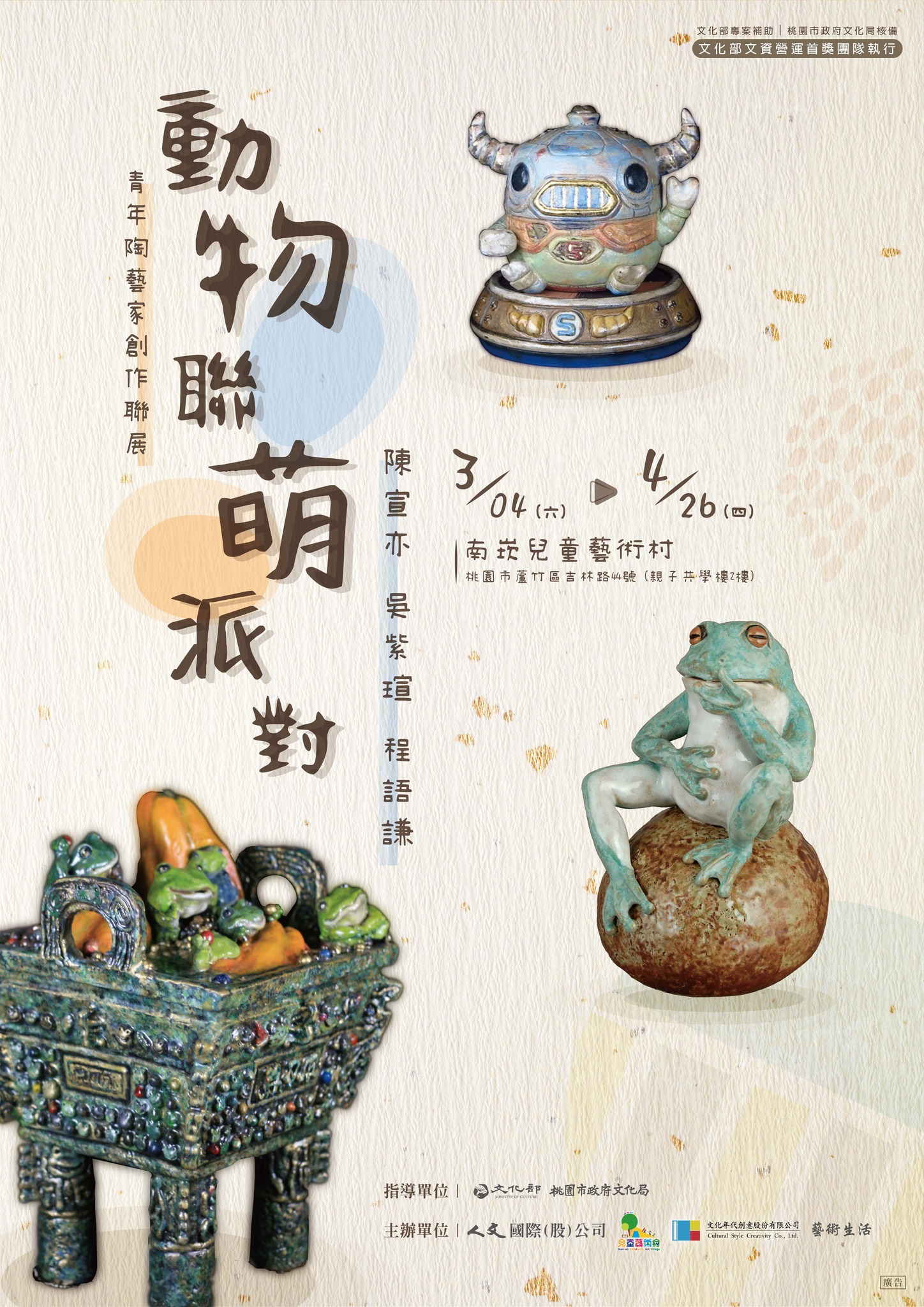 三位來自不同領域的創作型陶藝家一同聯合展出,每個創作者用作品敘述自己的想法,一起來聆聽他們天馬行空的想像力與萌萌角色的童趣!與大家一同分享能量滿分、絕無僅有的陶作,願創作美好安定人心,祈願大家一切健康歡喜、平安永續!