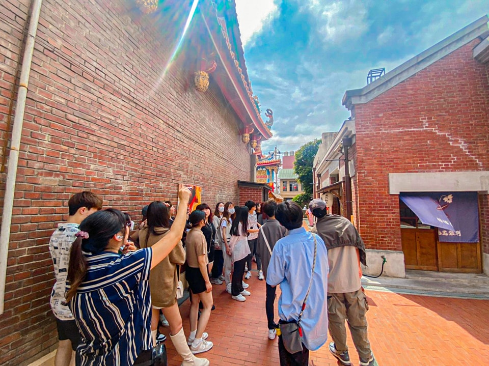 同學們認真聆聽著導覽介紹;仔細眼看著園區建築的歷史歲月;