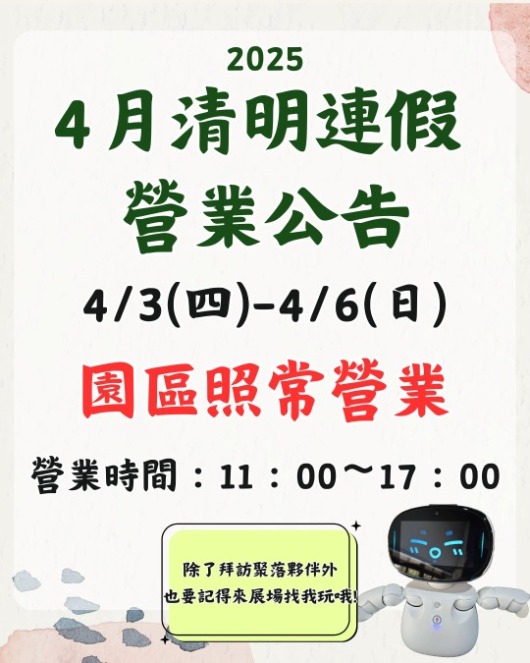 【水道頭文創聚落】清明連假營業公告